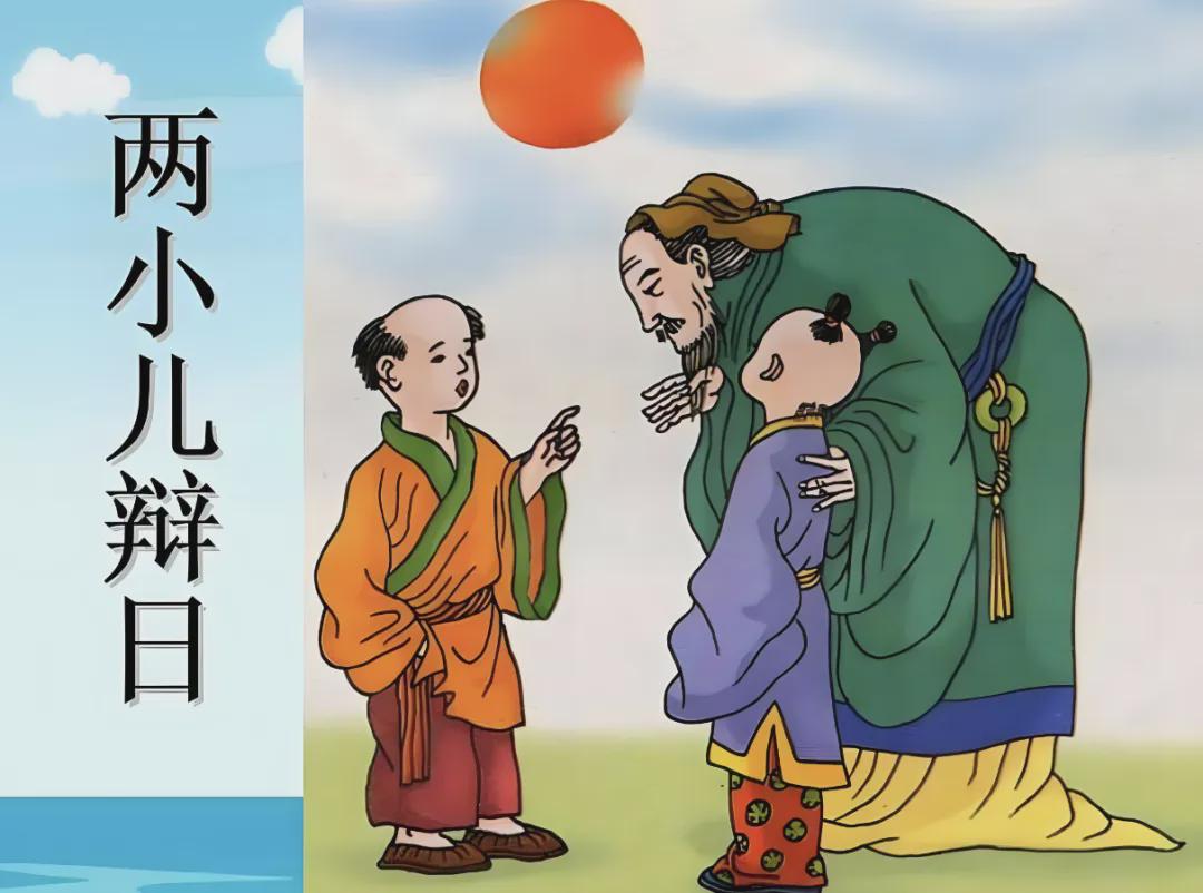 据说孔子行至河南修武县一带(当时曾属晋国管辖),遇到两个小孩在争论太阳什么时候离人近——一个说早晨近,因为看着大;一个说中午近,因为感觉热。孔子竟不能决断,无言以对,这便是“两小儿辩日” 。
