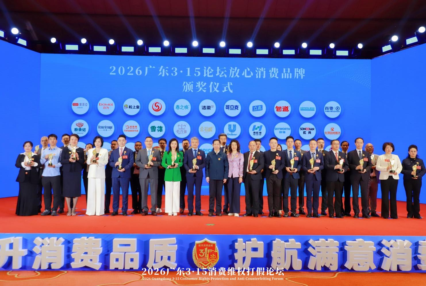 3月15日,由广东省市场监督管理局指导的“2026广东3·15消费维权打假论坛”在广州举行。在这场以“提升消费品质·护航满意消费”为主题的论坛上,中顺洁柔获评“广东3·15放心消费品牌”“优质企业名录30强”和“打假共建单位”三项荣誉。